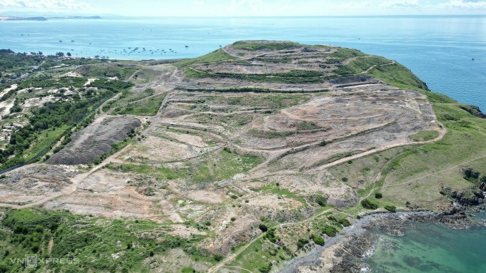 Dự án Khu biệt thự cao cấp và du lịch nghỉ dưỡng Đồi Hòn Rơm, một trong 33 dự án bất động sản bị Sở Xây dựng Bình Thuận “tuýt còi” đang dừng thi công, tháng 6/2024. Ảnh: Việt Quốc
